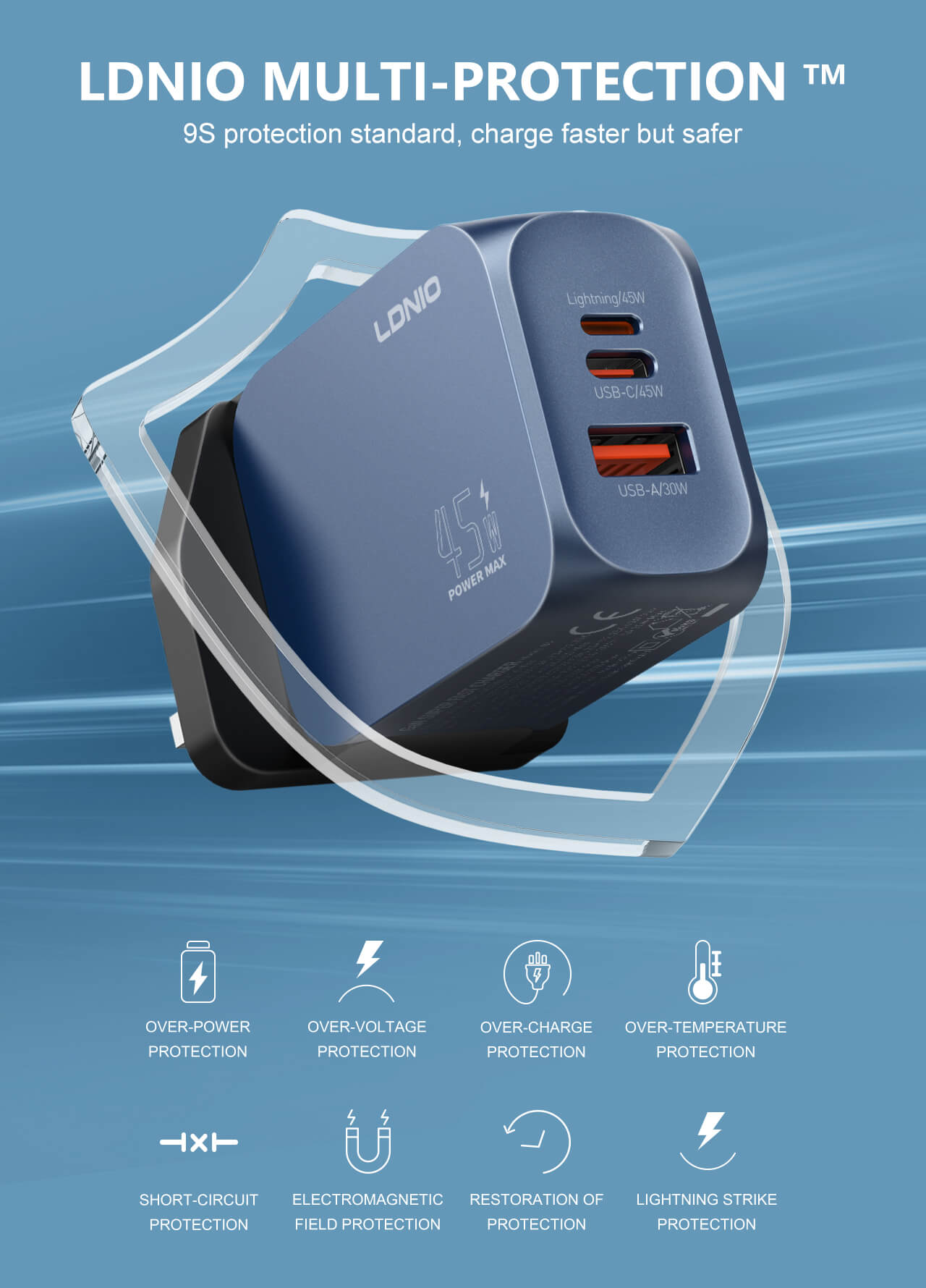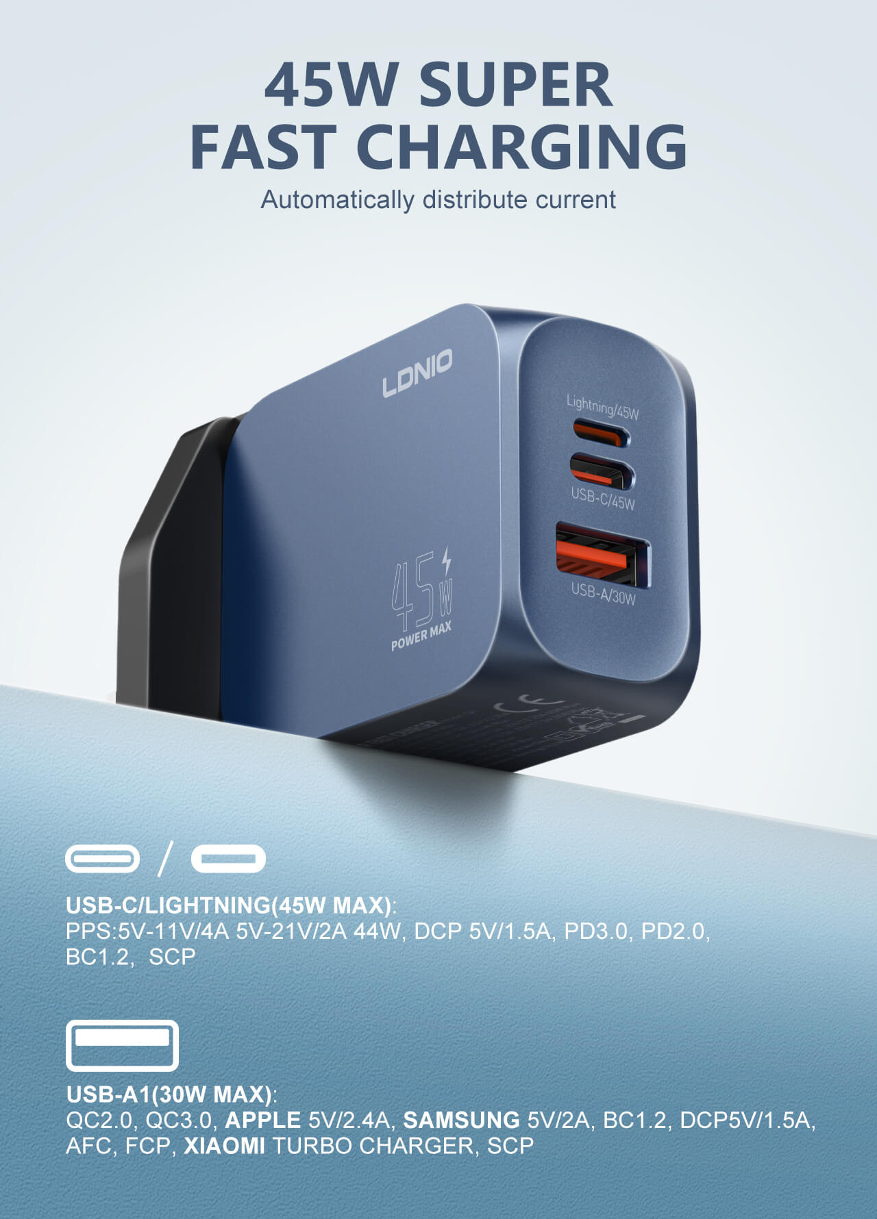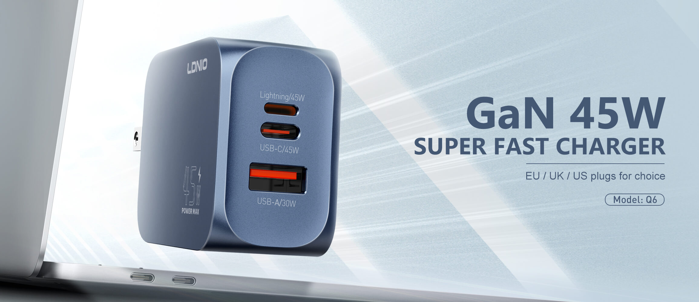 45W GAN (USB-C +USB-A + LIGHTNING) Super Fast Charger Q6