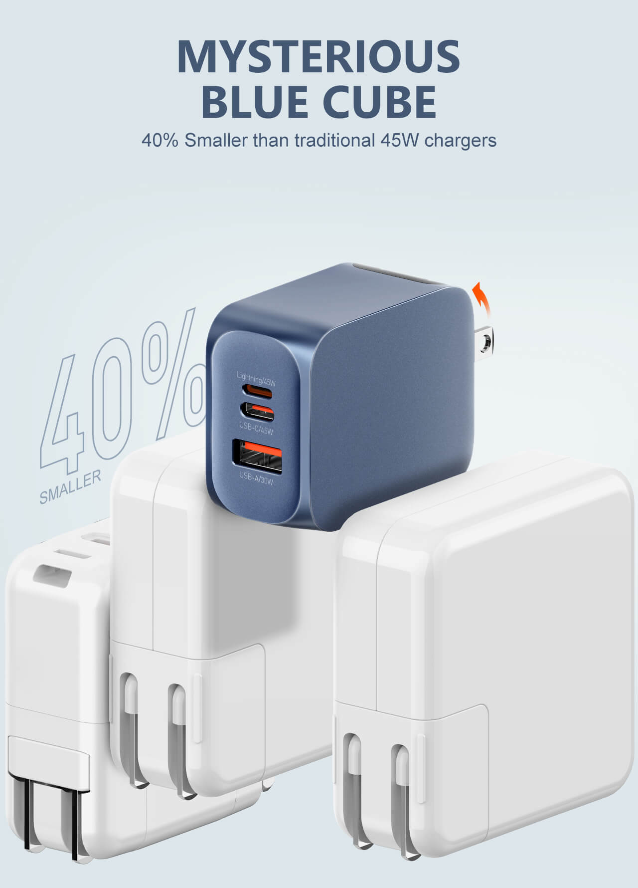 ![]() Quick charge technology 45W USB-C/A supper fast charging. | ![]() Modern design Sense of high quality, completely different look from other chargers. |