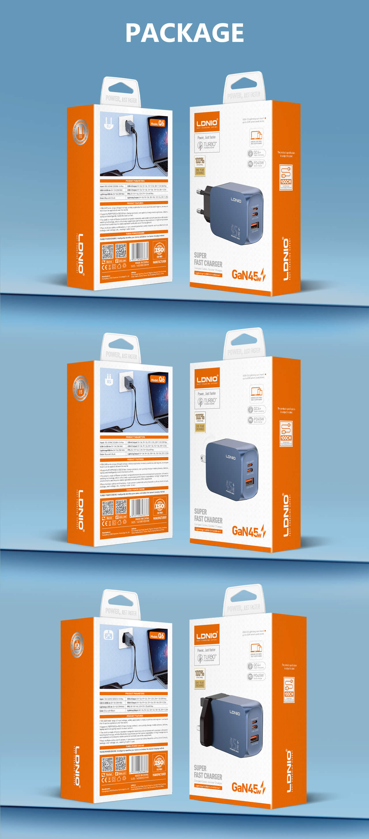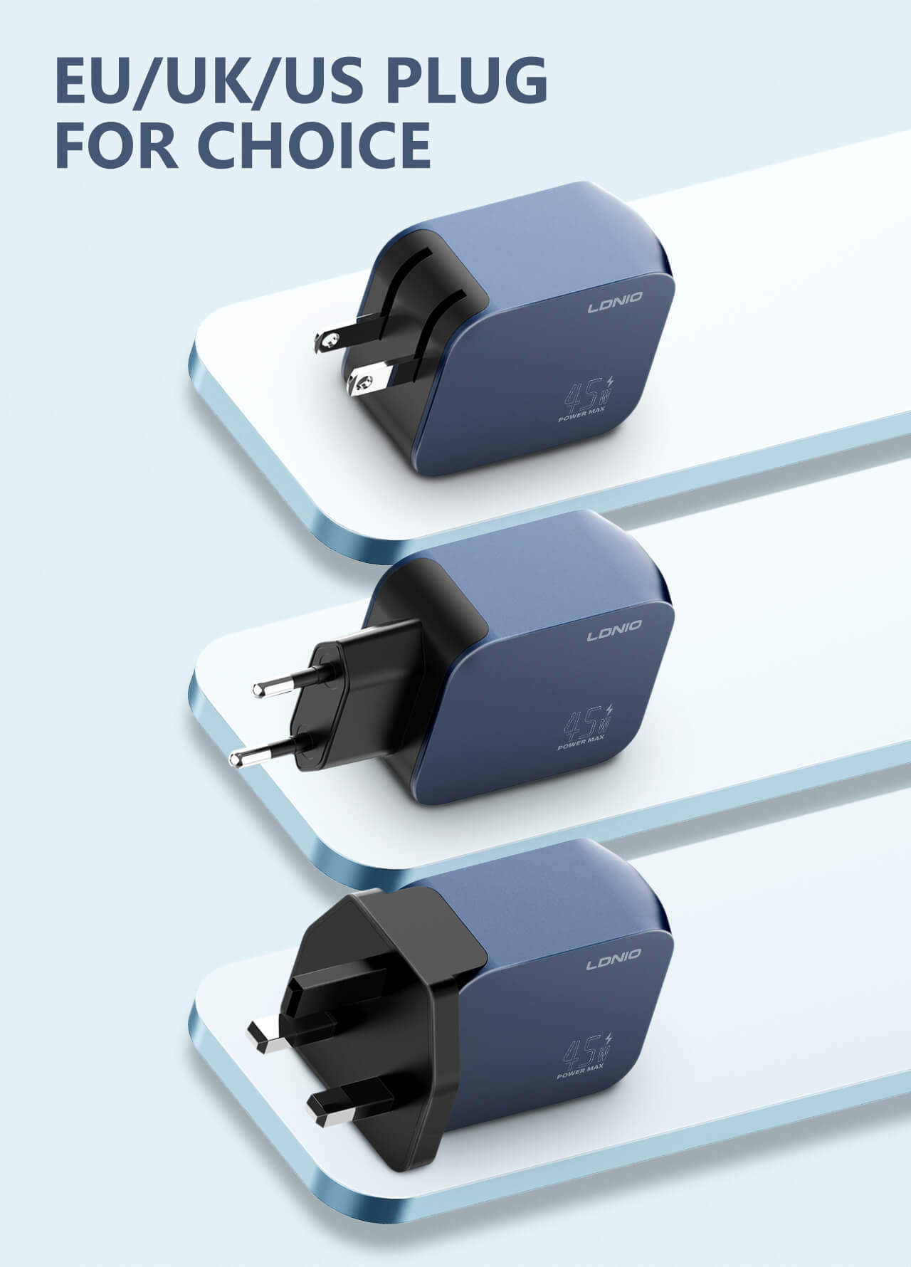 LDNIO’s new Q6 45W Portable Fast Charger USB-C/A Fast Charging Adapter Travel charger has a UK/EU/US plug option