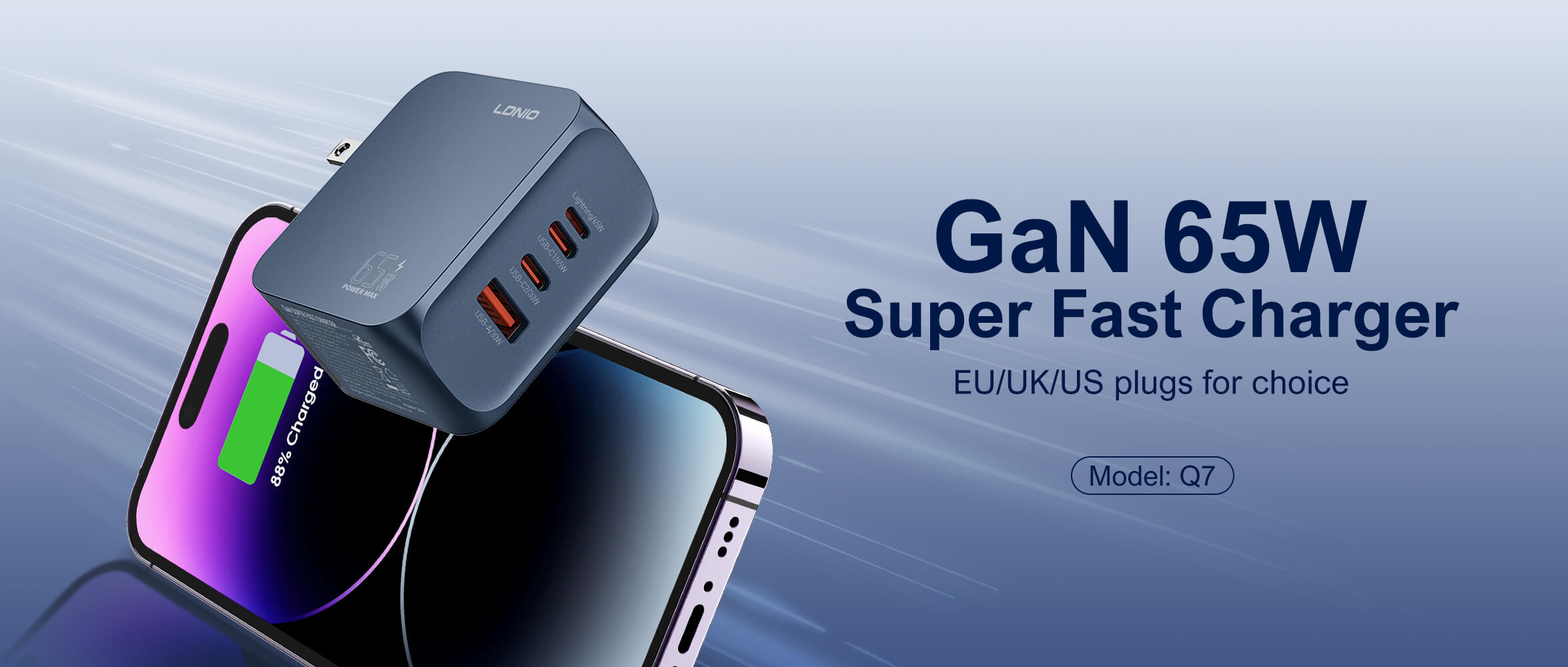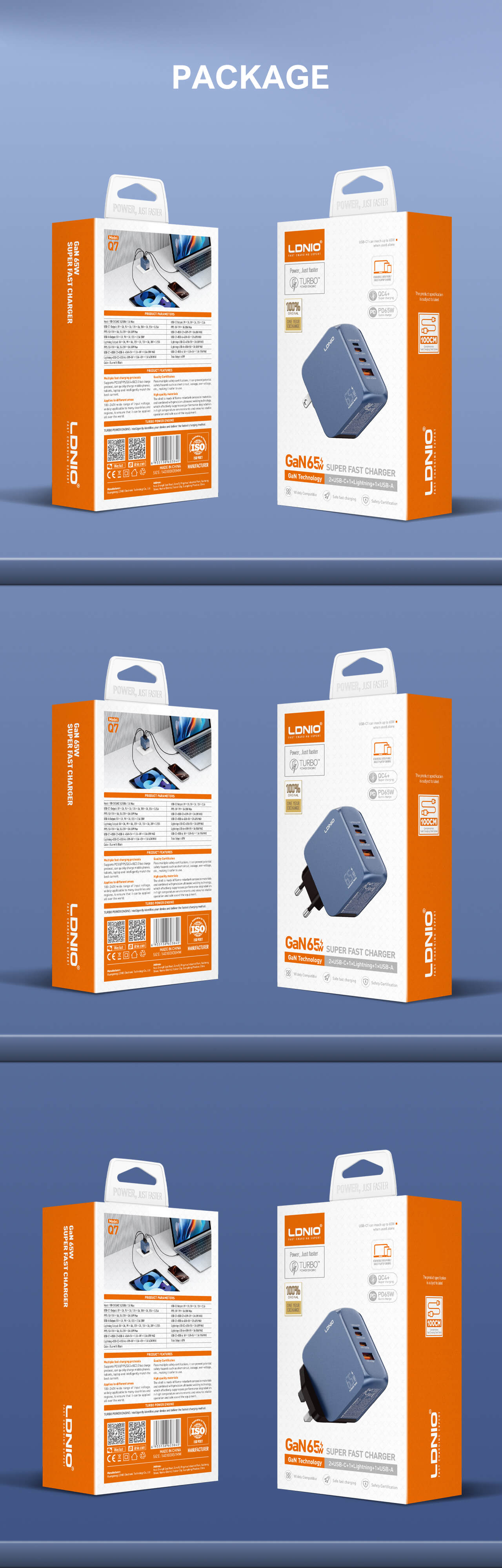 65W PD GAN (USB-C +LIGHTNING +USB-A) Super Fast Charger Q7