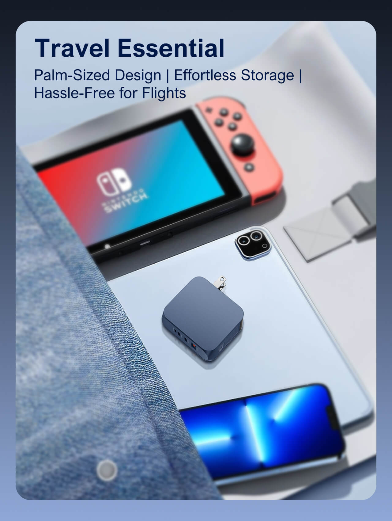 ![]() Quick charge technology 2 USB-C+1 USB-A + Lightning charging port up to 65W ultra-fast charging. | ![]() Modern design Sense of high quality, completely different look from other chargers. |