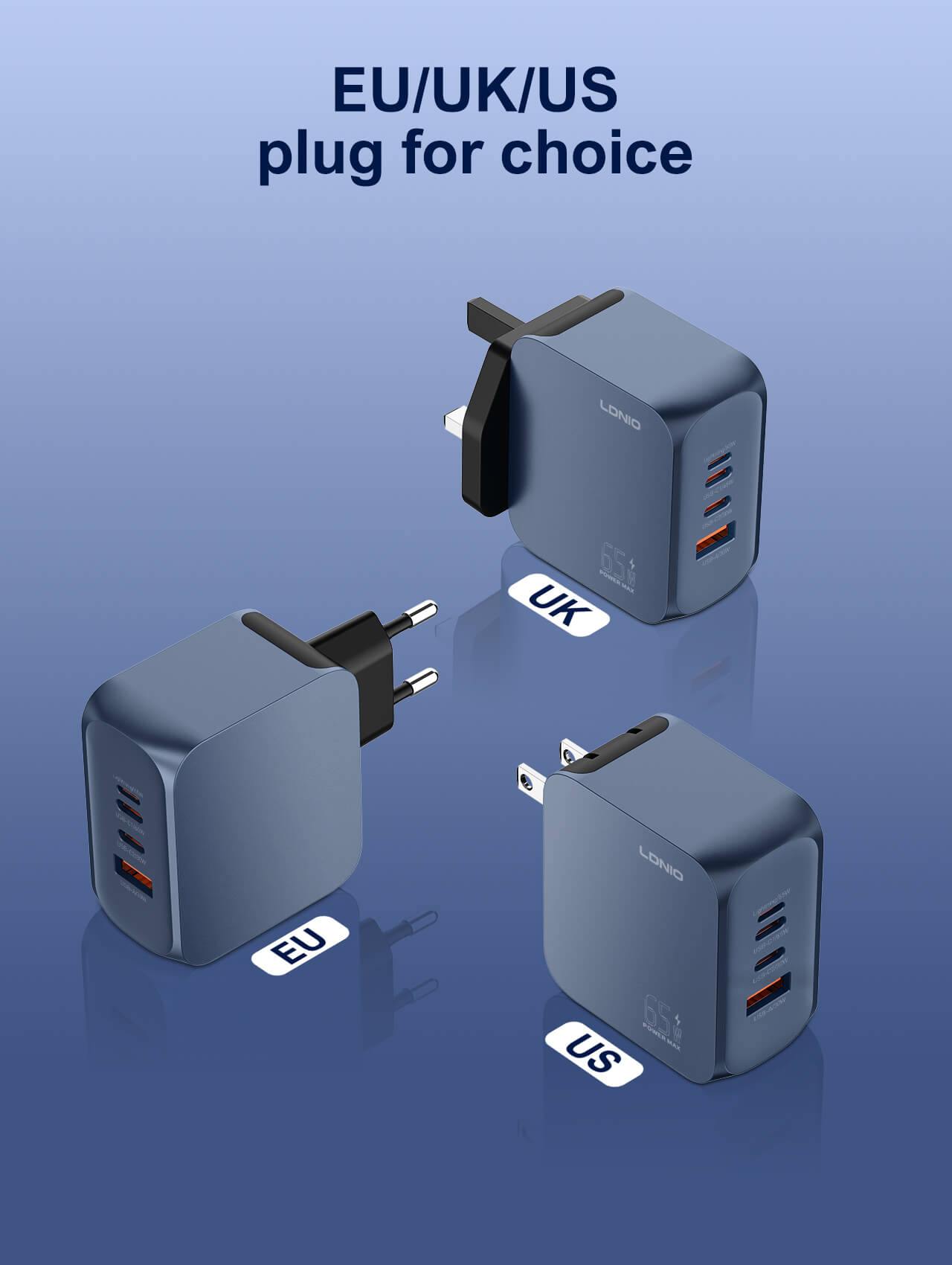 LDNIO’s new Q6 65W Portable Fast Charger PD Fast Charging Adapter Travel charger has a UK/EU/US plug option