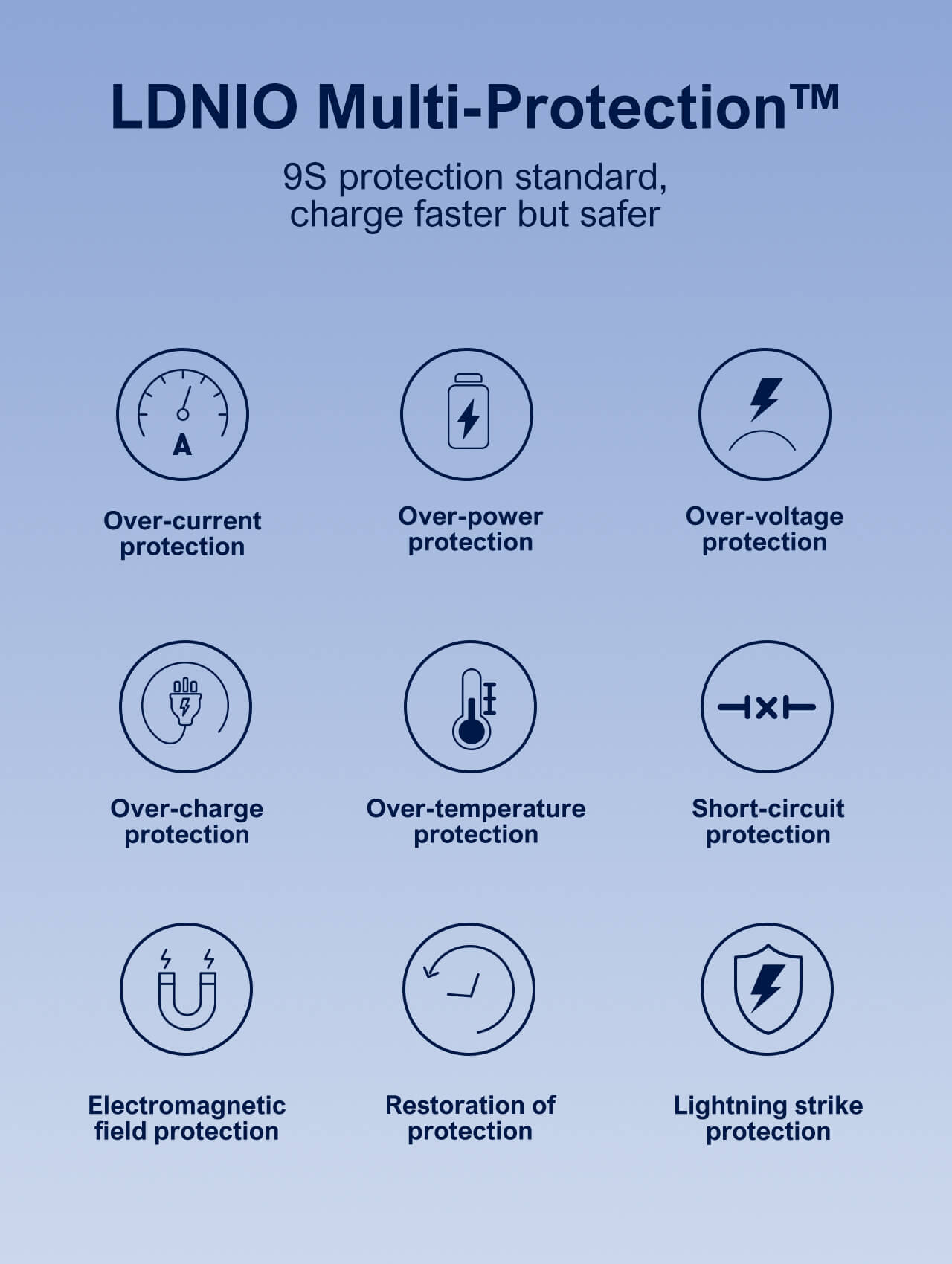 ![]() Widely applicable Three different US/EU/UK design options are available. | ![]() Multi-protection High grade fire-proof PC material, 9 multi-protection, safe to use. |
