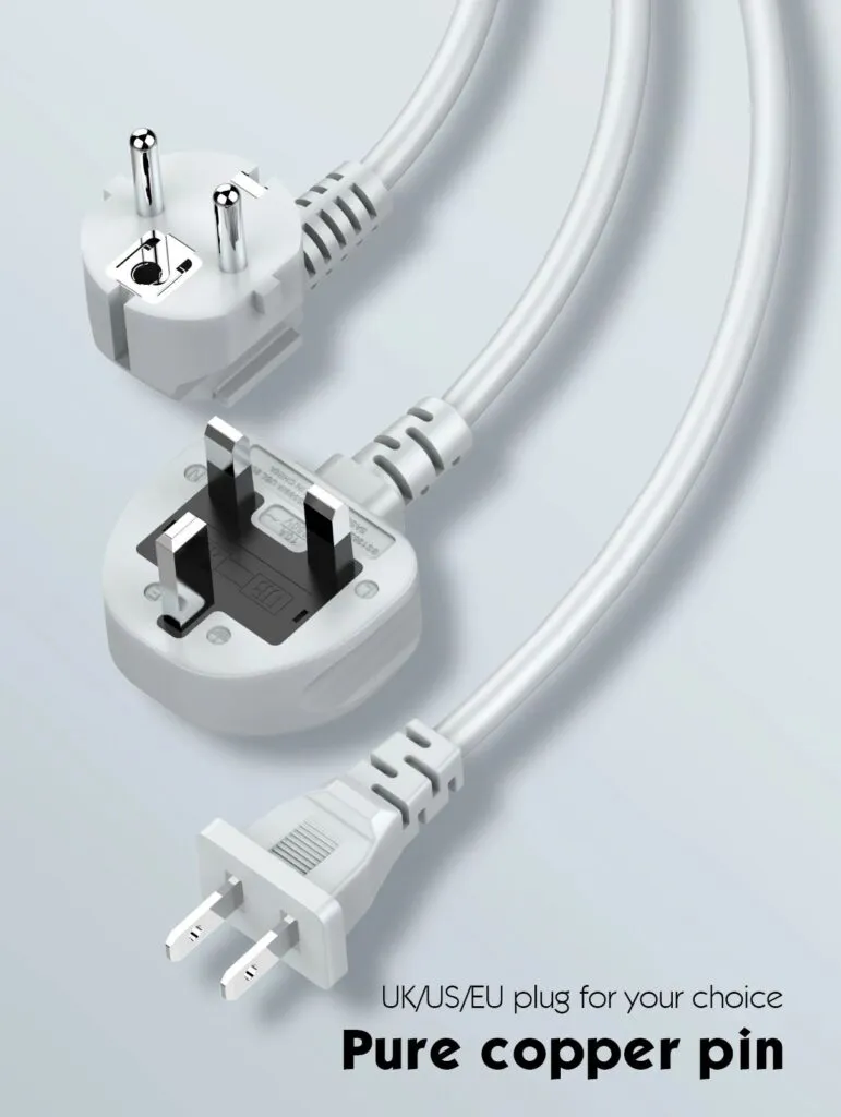- US/EU/UK different plugs to meet different requirements.