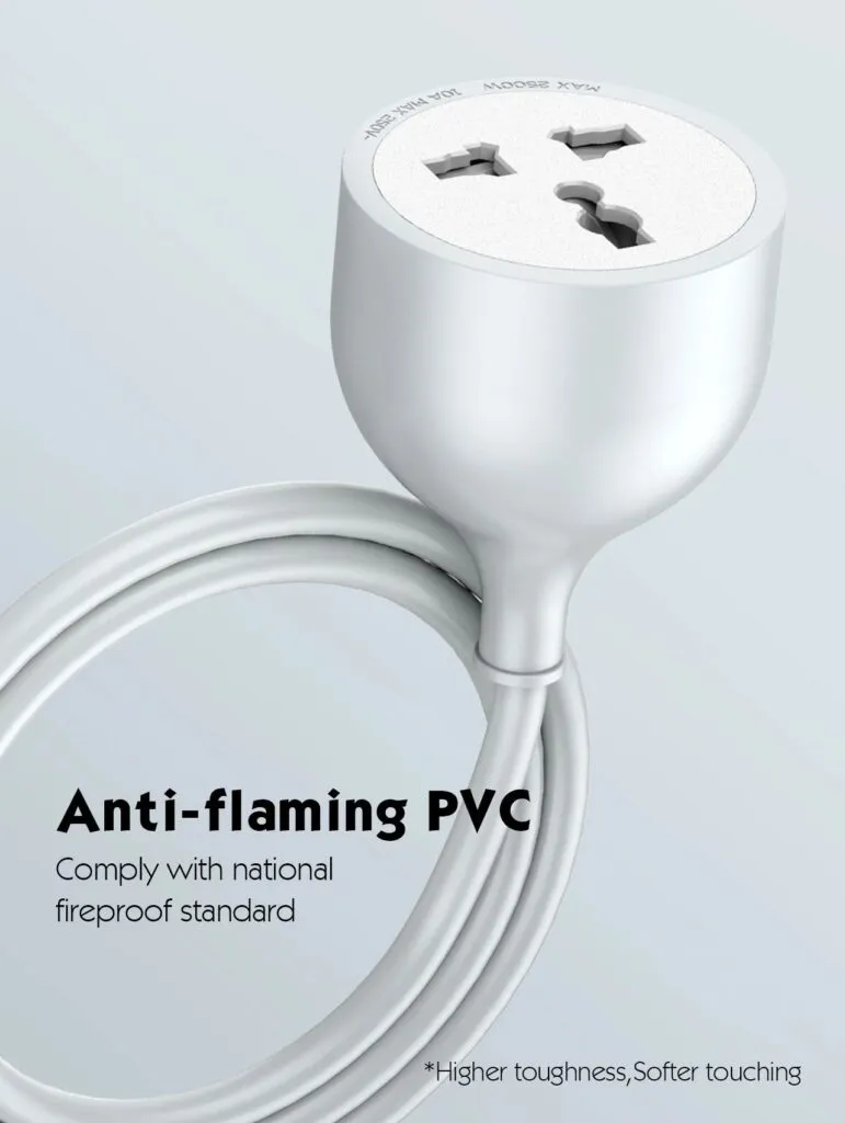 This extension cord has a universal power socket. It works with many plug types like EU, UK, US, and more. You can use your local or imported devices without problems. No need to find adapters or worry about plug types. LDNIO Pakistan brings you this easy and flexible solution.